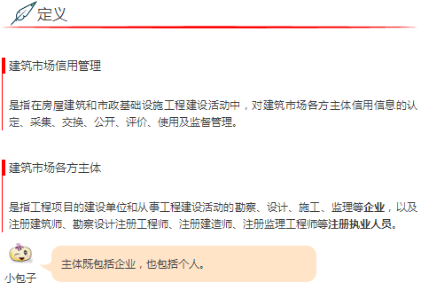 本办法所称建筑市场信用管理是指在房屋建筑和市政基础设施工程建设活动中,对建筑市场各方主体信用信息的认定、采集、交换、公开、评价、使用及监督管理。