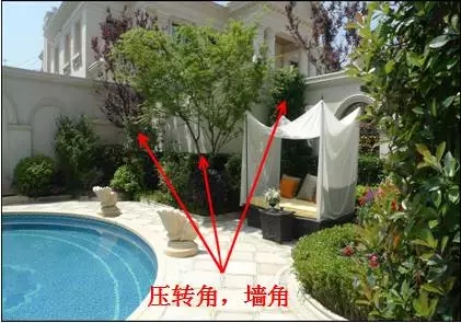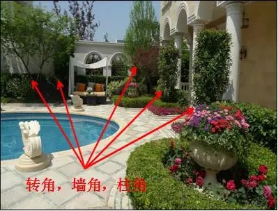 ❸充分利用景石,大树茎干,拐角处和墙角的锐面。