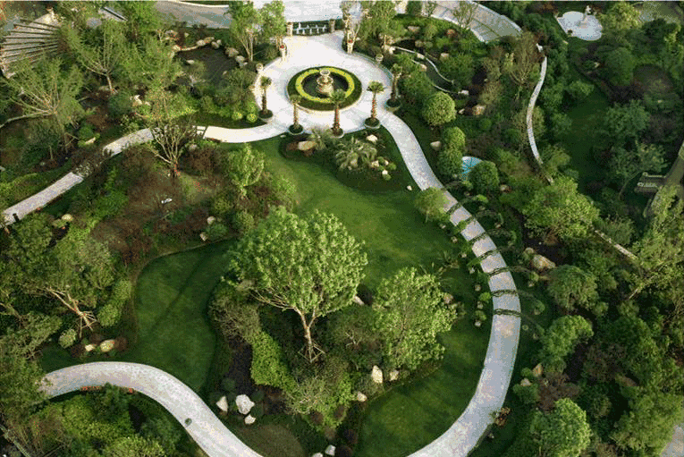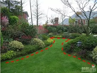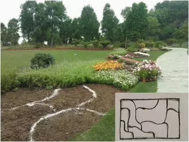 ❶根据地形、园路、林缘线合理选择弧形,尽量保证线条顺畅完整。大地形以大弧为主,小地形和花境可以采用碎拼和小弧多变曲线。