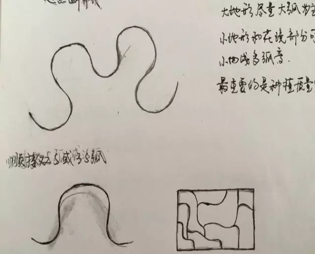 ❹小地形上的弧线尽量使线条夸张,变化明显,曲线灵活。不建议弧度变化小的种植形式。