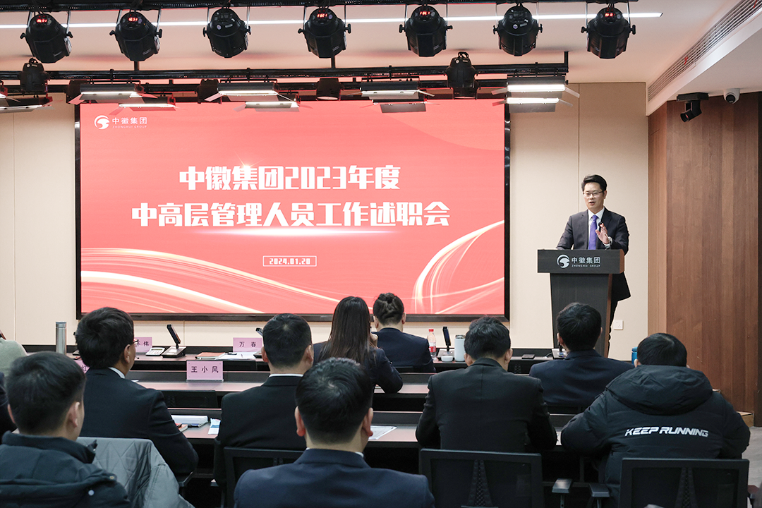1月20日,中徽集团召开2023年度中高层管理人员工作述职会,总结回顾2023年度工作成果,查摆问题,系统谋划2024年工作计划。中徽集团总裁葛怀伟出席会议并作总结讲话,副总裁万春主持会议,集团中高层管理人员参加工作述职。