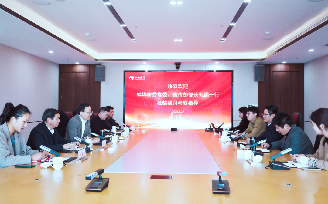 蚌埠市宣传部文化改革发展科一级科员张曼莉,禹会区昇荣集团投资部负责人沈磊等一行来访中徽集团考察交流,中徽集团总裁葛怀伟携集团高管陪同接待并参加会议。