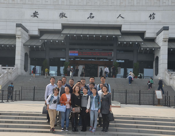 安徽名人馆前合影 参观结束后,大家深深被江淮儿女的光芒智慧、爱国情怀感染了。让我们沿着先人的足迹,凝聚力量,建设今日的安徽,明日的大湖名城! |