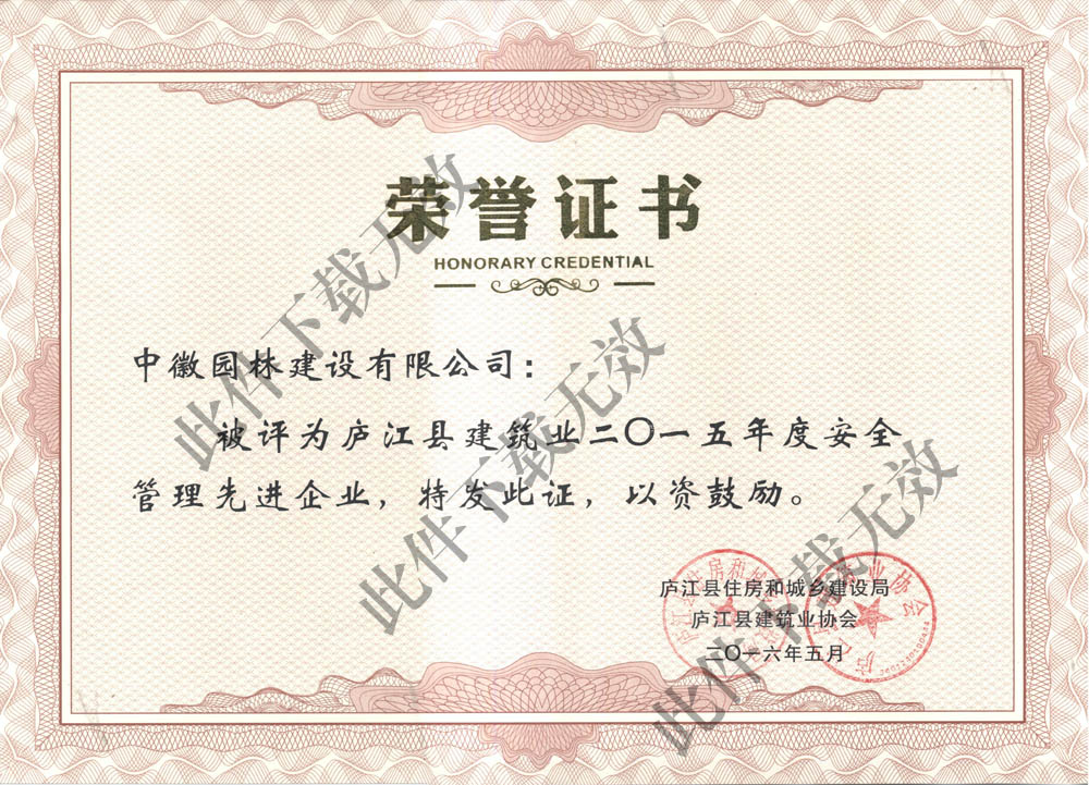 此次表彰的对象主要是合肥建筑业企业50强,经过近3个月的评审,我开元网站登录入口获得了合肥市建筑业2015年度优秀施工总承包企业的荣誉。2016年5月,庐江县建筑业协会领导高度评价了我开元网站登录入口,称我开元网站登录入口为地方企业的榜样,为我开元网站登录入口颁发了此荣誉证书,同时协同县住建局为我开元网站登录入口颁发了2015年度庐江县安全管理先进企业的荣誉证书。