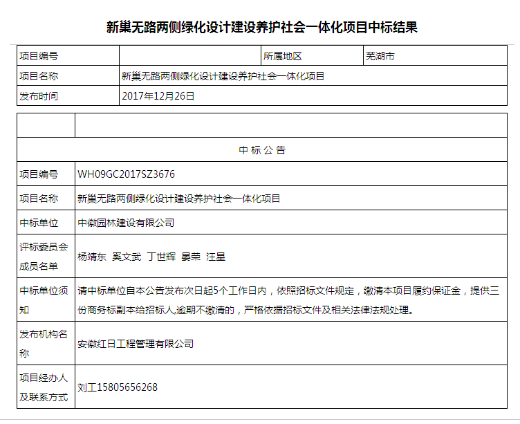 2017年12月26日开元网站登录入口投标的新巢无路两侧绿化设计建设养护社会一体化项目中标。