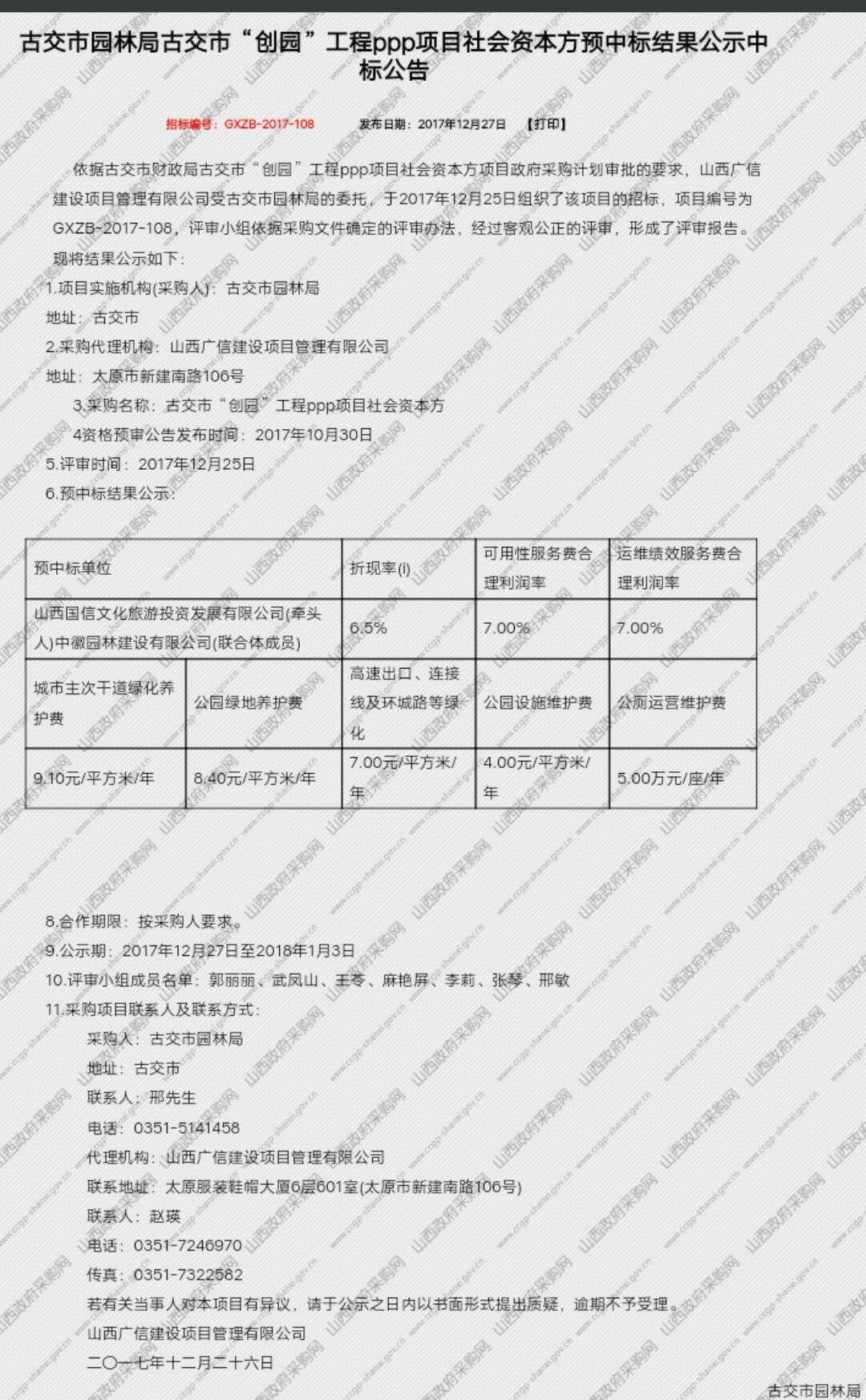 2017年12月27日开元网站登录入口中标山西省古交市“创园”PPP项目,该工程总计23个子项目。