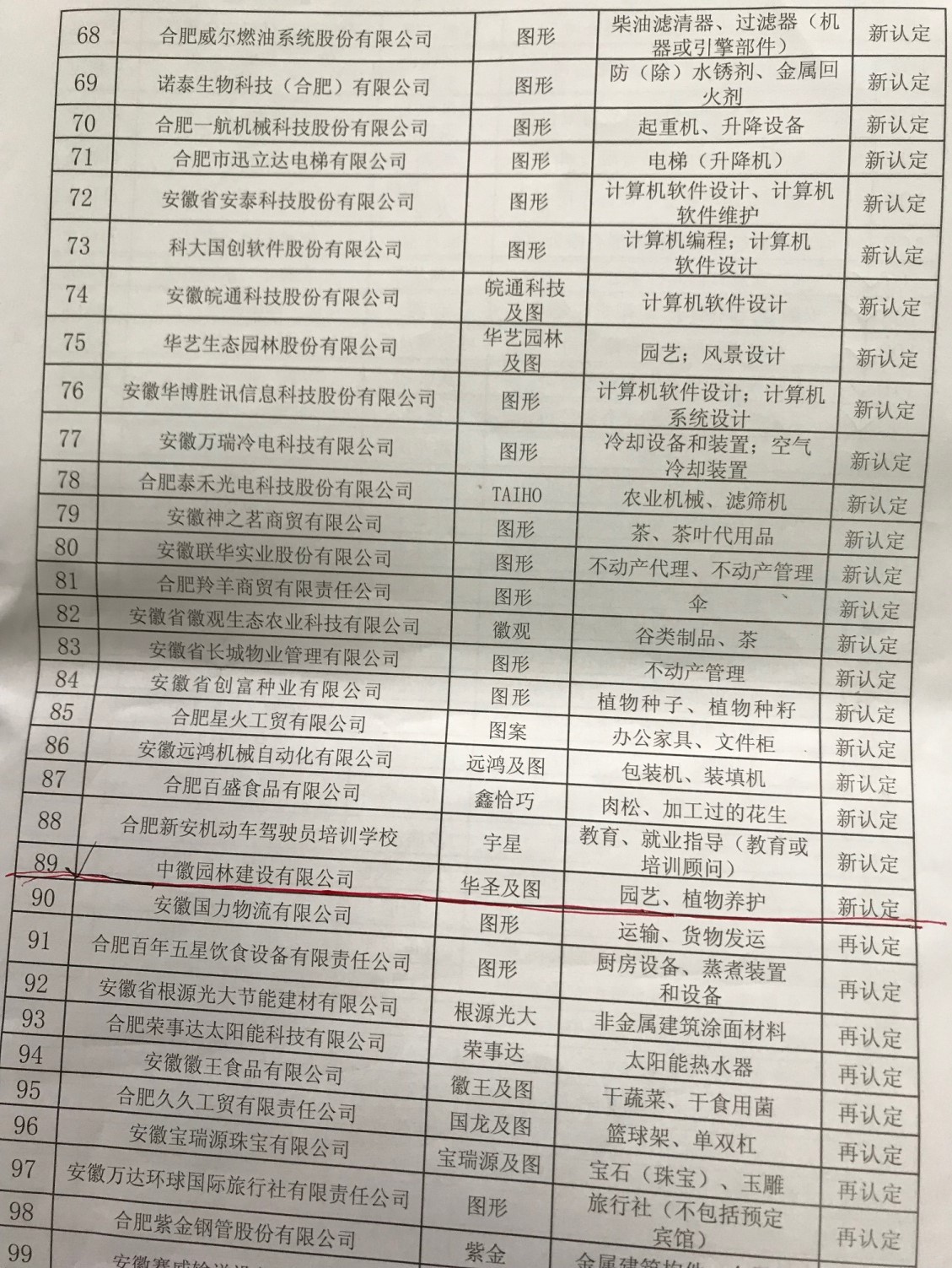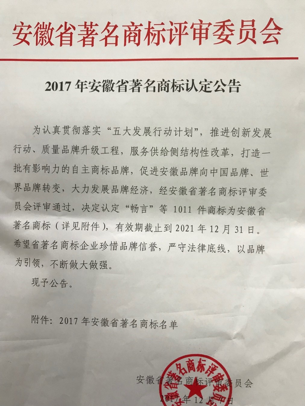 牌商标(44类),经专家评审,被认定为安徽省著名商标。
