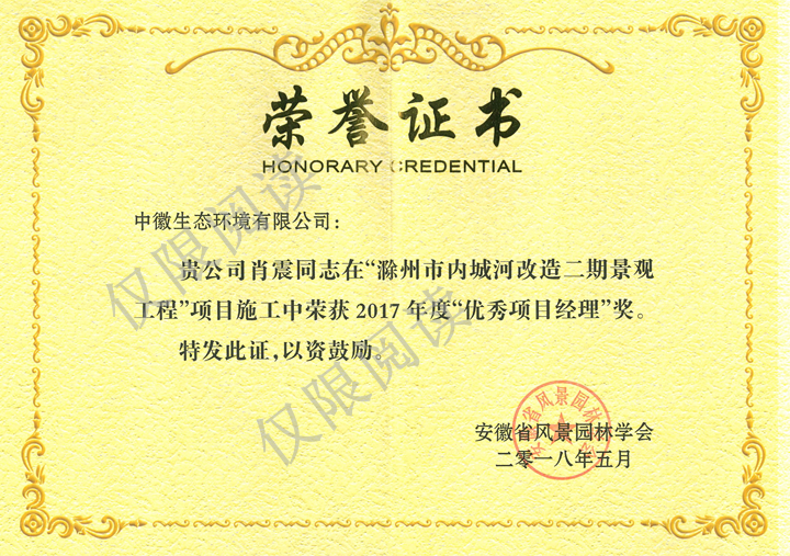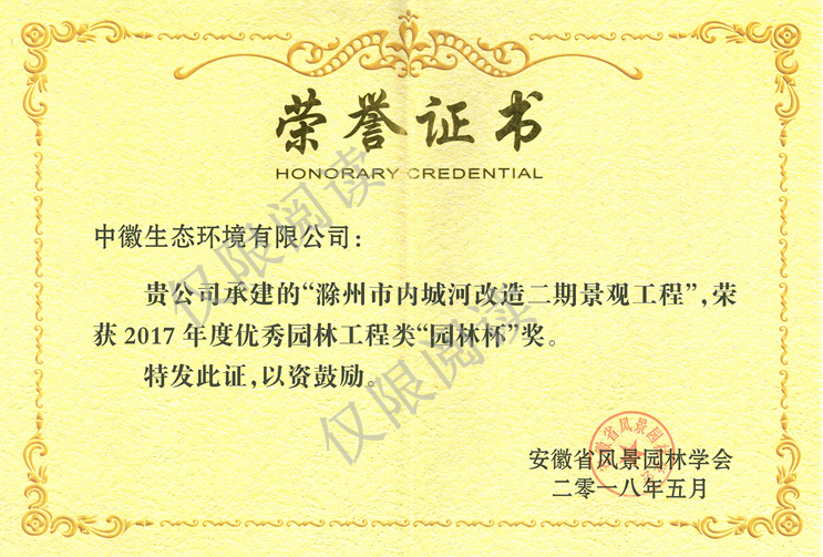 1. 2017年度“园林杯”优秀园林工程(滁州内城河改造二期景观工程);