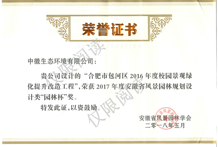 2. 2017年度“园林杯”安徽省风景园林规划设计设计类(合肥市包河区2016年度校园景观绿化提升工程);