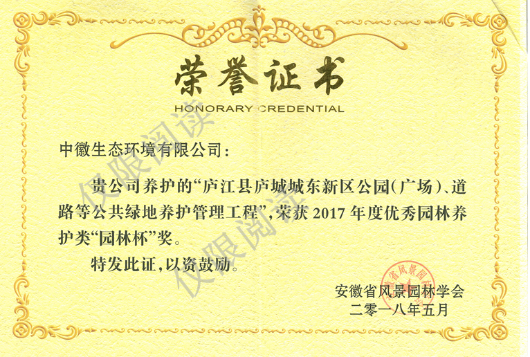 3. 2017年度“园林杯”优秀园林养护类(庐江城东新区公园(广场)道路等公共绿地养护管理工程);
