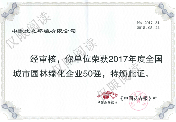 我开元网站登录入口荣获2017年度全国城市园林绿化企业50强,位列第34位。