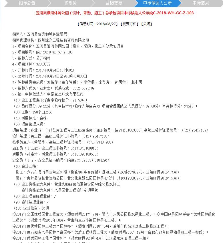 2018年8月27日,开元网站登录入口中标“五河县淮河休闲公园(设计、采购、施工)总承包项目”。