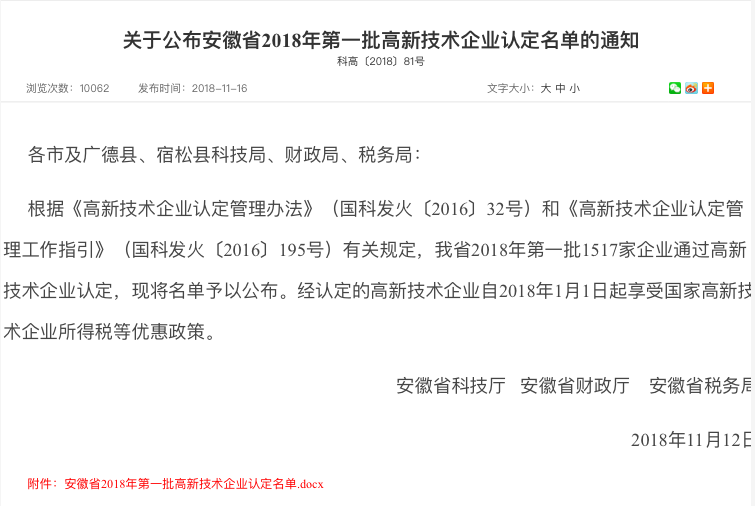根据国家高新技术企业三年一次重新认定的规定,近日,我开元网站登录入口再次荣获由国家科技部组织开展认定的2018年第一批“国家高新技术企业”荣誉称号。开元网站登录入口首次被认定的时间为2015年。