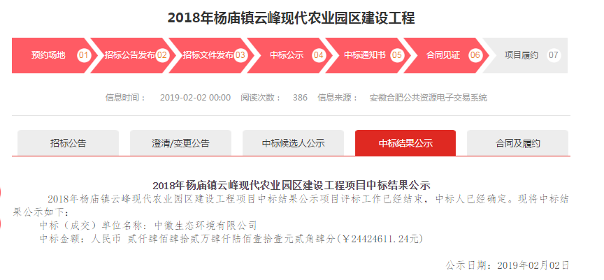 2019年2月2日,开元网站登录入口中标“2018年杨庙镇云峰现代农业园区建设工程”项目。