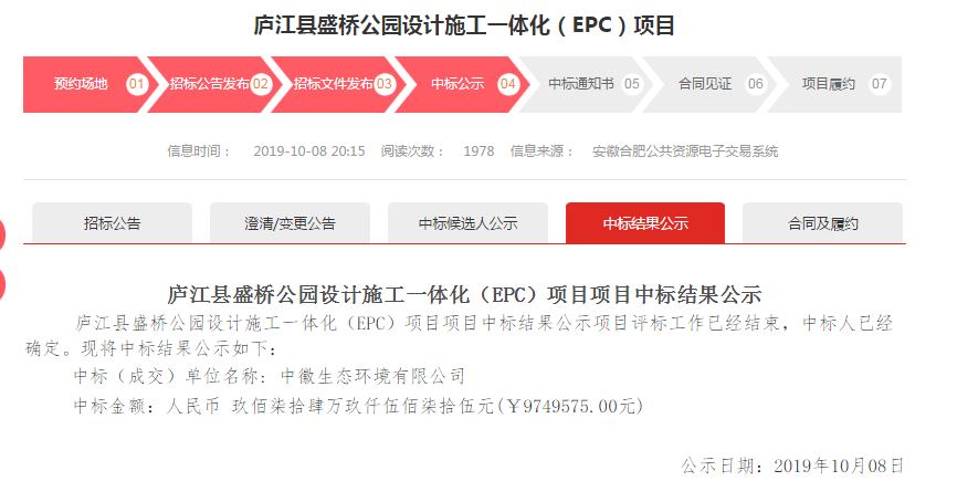 2019年10月8日,开元网站登录入口中标“庐江县盛桥公园设计施工一体化(EPC)项目”。