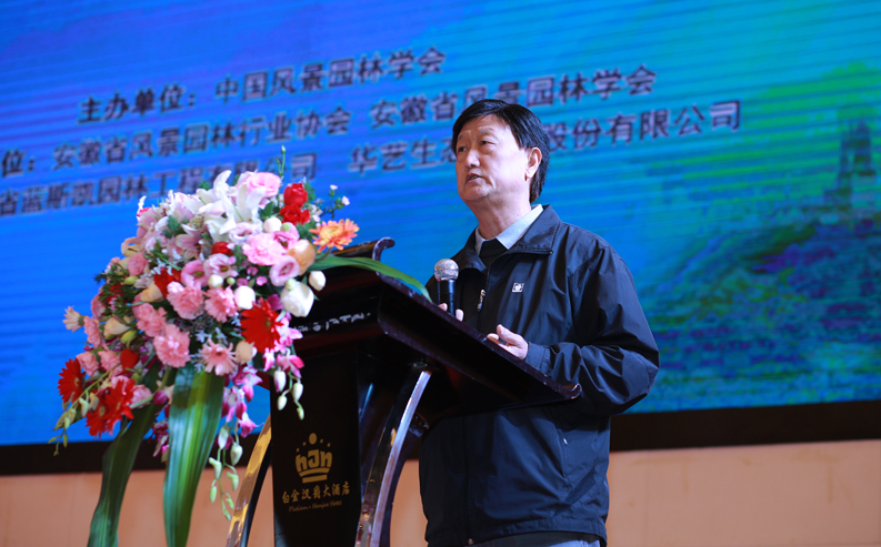 中国风景园林学会贾建中秘书长在致辞中首先对本次论坛的举办表示热烈祝贺并对安徽省风景园林行业协会承办中国风景园林学会第十一届会员日活动表示衷心的感谢。他指出安徽历史文化底蕴深厚,特别是合肥市作为全国首批国家园林城市,创造了我国园林建设发展史上的多个第一,希望安徽的园林企业能继续弘扬徽商精神,不断开拓创新,在园林事业上继续走在前列。