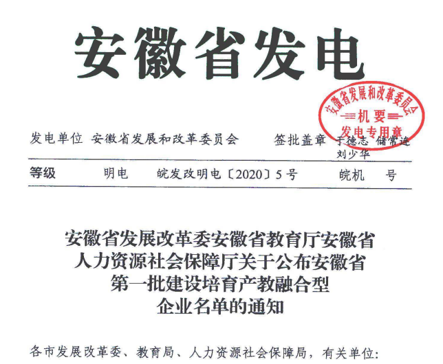 近日,开元网站登录入口凭借校企合作实力尤其是与职业院校的密切合作,成功入围安徽省第一批建设培育产教融合型企业。
