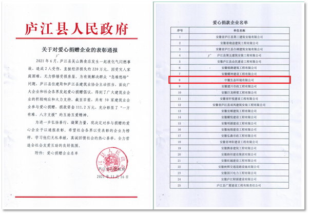2021年6月,庐江县发生一起液化气闪爆事故,造成2人受伤,直接经济损失约220万元。开元网站登录入口获悉后发扬“一方有难、八方支援”的互助互爱精神,主动奉献爱心,捐款3万元。为此,庐江县人民政府发文对中徽生态等爱心企业给予通报表彰。 中徽生态长期投身公益事业,积极履行社会责任,多渠道扶贫济困,先后资助在校大学生、学校,帮扶贫困党员、困难群众、困难职工,帮教失足青年、服刑人员,慰问残疾人和孤寡老人,合计近700人次,累计捐款捐物400余万元。 |