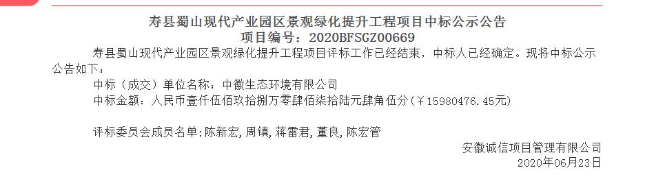 2020年6月23日,开元网站登录入口中标“寿县蜀山现代产业园区景观绿化提升工程项目”。