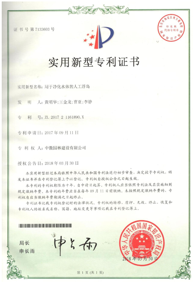 • 用于净化水体的人工浮岛
