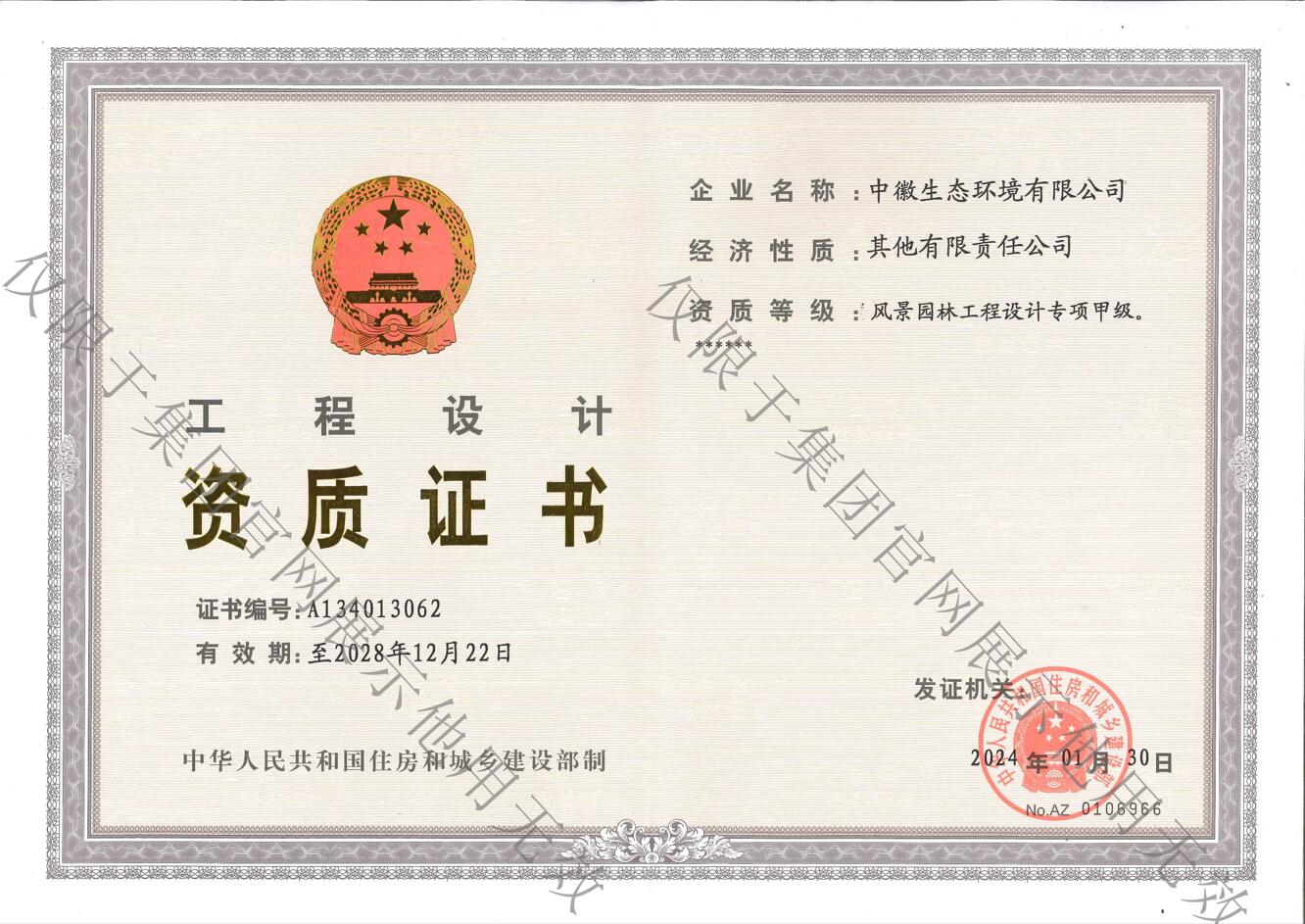 • 风景园林工程设计专项甲级