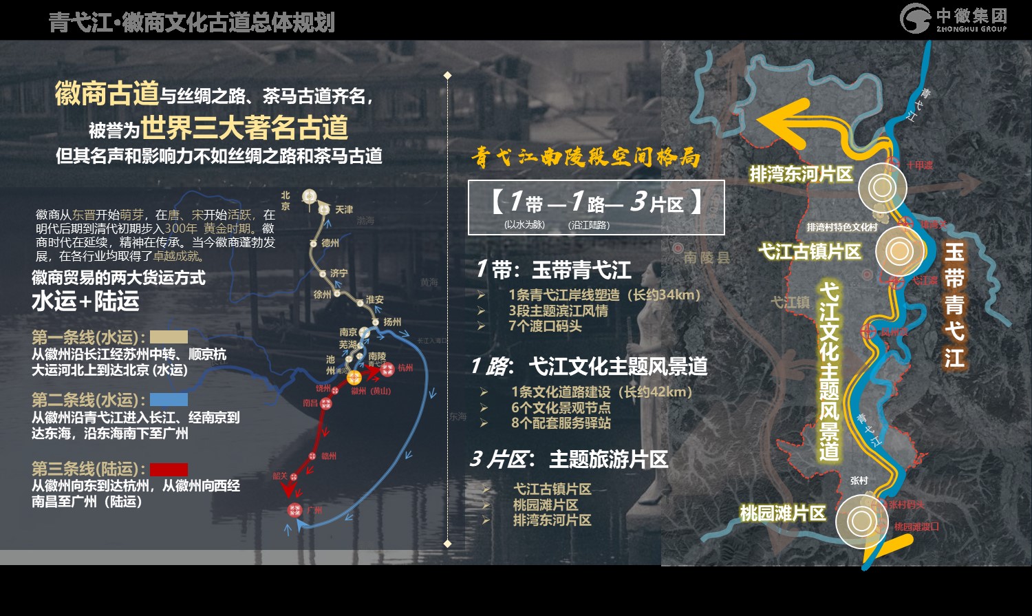 《芜湖南陵青弋江·徽商文化古道总体规划》国家重要文化遗产复兴项目,对南陵县境内青弋江及沿岸的徽商文化遗存保护利用和文化、文旅等相关产业提升,对传统文化保护和传承,促进县域经济发展,发挥重要作用。